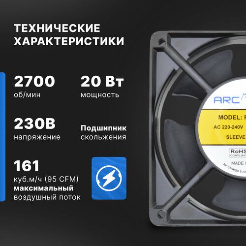 Найти - Вентилятор осевой для сети переменного тока кулер ARCTEAC F1238SXAT 20Вт скольжения 2700об/мин коннектор