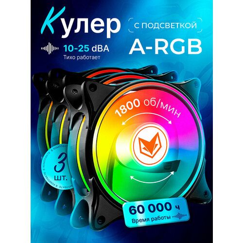 Найти - Комплект кулеров COOLMOON (вентиляторов) для компьютера тихий с подсветкой ARGB 5V 3PIN / 4PIN 120х120х25мм для охлаждения процессора ПК, черный, 3шт