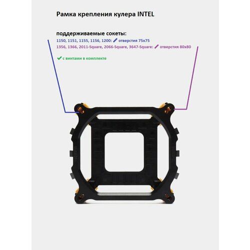 Для сокетов: 1150, 1151, 1155, 1156, 115X, 1366, 2011, 2066 - под башенные кулеры (винты для рамки в комплекте)