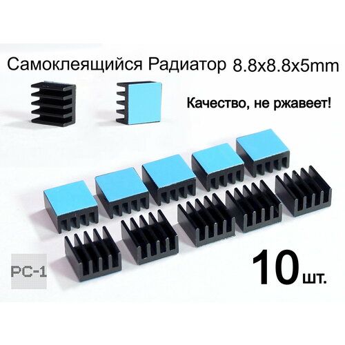 Найти - 10шт. 8.8x8.8x5mm Самоклеящийся Радиатор охлаждения для чипов и микросхем электроники с термо-скотчем. Алюминий Черный