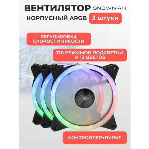 Найти - Вентилятор (кулер) с ARGB подсветкой для корпуса ПК, комплект 3 кулера + контроллер + пульт