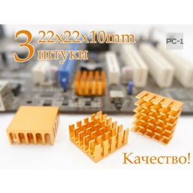 Найти - 3шт. 22x22x10mm Gold Ребристый Алюминиевый радиатор для чипов, микросхем ПК и электроники, цвет медный. Качество, не Ржавеет
