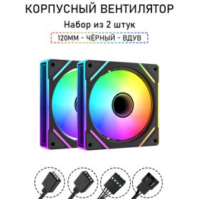Найти - Вентилятор для корпуса LovingCool - 7PRO, набор из 2 штук, 120мм, чёрный, вдув, A-RGB, PWM + 5v3