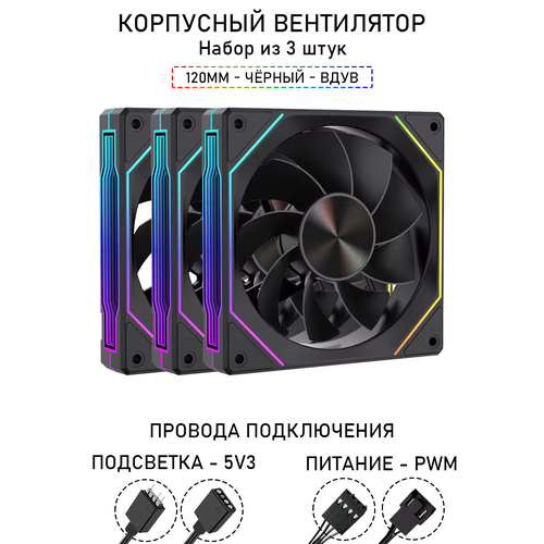 Найти - Вентилятор для корпуса LovingCool - 4RS, набор из 3 штук, 120мм, чёрный, вдув, A-RGB, PWM + 5v3