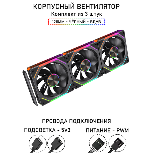 Найти - Модульный вентилятор - 5RS Inline - 120мм, A-RGB, PWM+5v3, Комплект из 3 штук, чёрный, на вдув в корпус