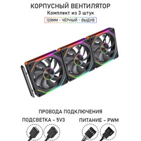 Найти - Модульный вентилятор - 5RS Inline - 120мм, A-RGB, PWM+5v3, Комплект из 3 штук, чёрный, на выдув из корпуса
