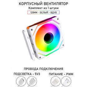 Найти - Модульный вентилятор - 5PRO Inline - 120мм, A-RGB, PWM+5v3, Комплект из 1 штук, белый, на выдув из корпуса