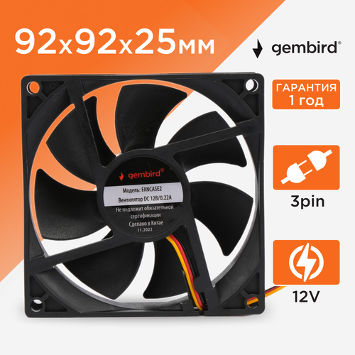 Вентилятор Gembird "Fancase2" d90мм, 2500об./мин. (питание от мат.платы) (oem)