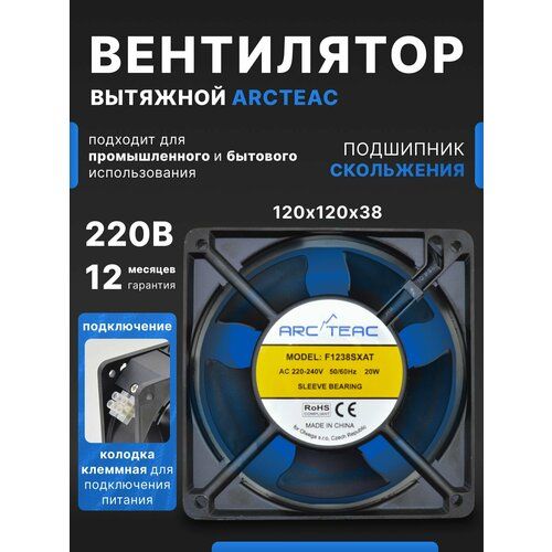 Найти - Вентилятор осевой ARCTEAC F1238SXAT-TB 120х120х38мм 230В AC 0.14А 161куб. м/ч 20Вт скольжения 2700об/мин клемма, 1 шт