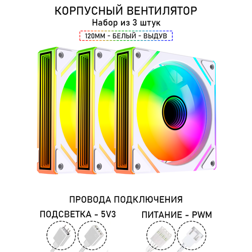 Найти - Вентилятор для корпуса LovingCool - 7PRO, набор из 3штук 120мм, белый, выдув, A-RGB, PWM + 5v3