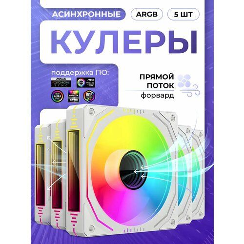 Кулер для корпуса с ARGB подсветкой для ПК 5шт прямой поток Белый