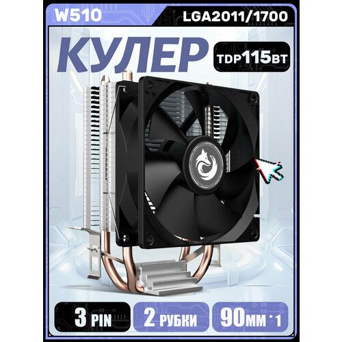 Найти - Кулер для процессора - башня 2 тепловых трубки 90mm, кулер для охлаждения процессора 115Вт