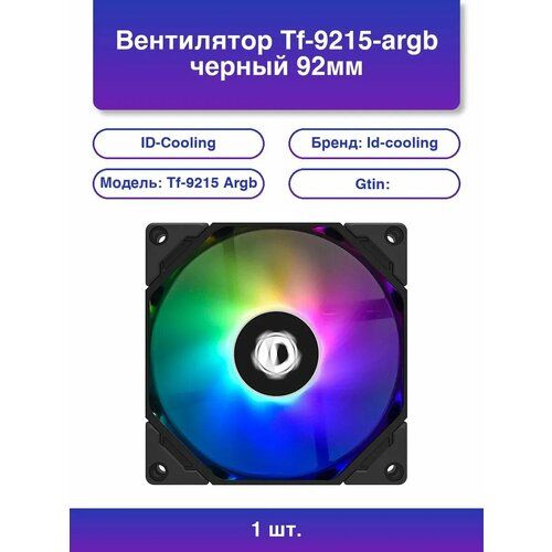 1 шт. Вентилятор Id-cooling Tf-9215-argb 92x92x15мм 168шт./кор Pwm 4pin супер-тонкий Argb черный 800-2500об/мин Box