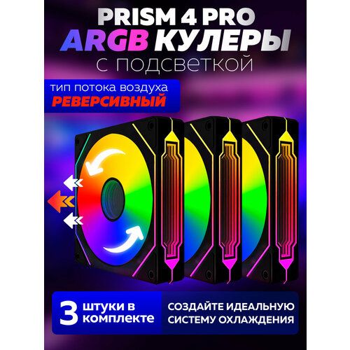 Найти - Черный Корпусный вентилятор для Компьютера Кулер Пк Prism 4 PRO 3 штуки Реверсивный