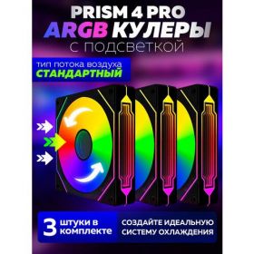 Найти - Черный Корпусный вентилятор для Компьютера Кулер Пк Prism 4 PRO 3 штуки