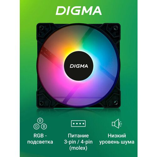 Вентилятор Digma DFAN-FRGB1 120x120x25мм, диаметр вентилятора 120мм, уровень шума до 23dB, вес 125гр, LED подсветка, Ret