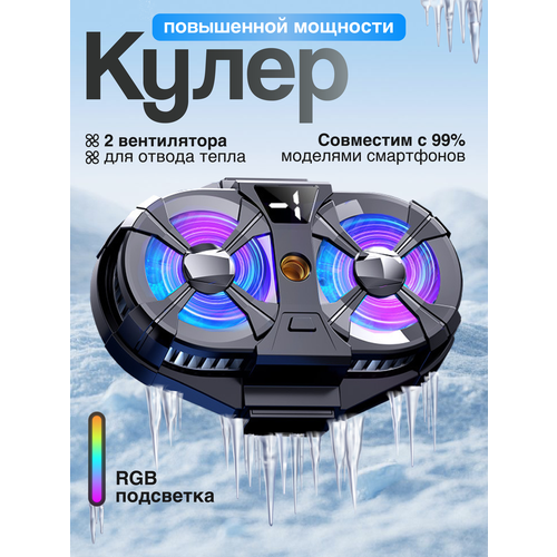 Найти - Кулер для телефона для охлаждения двойной, яркая RGB подсветка, два мощных вентилятора, 3 режима мощности