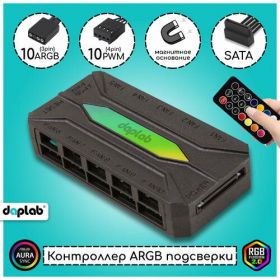 Многофункциональный контроллер ARGB и PWM разветвитель с пультом управления от DAPLAB - управление освещением и вентиляторами в одном устройстве Количество подключаемых вентиляторов: до 10 штук. Количество подключаемых ARGB устройств: до 10 штук. Тип подключения: 3-pin ARGB и 4-pin PWM. Питание: через SATA-разъем. Материал крепления: магнитное основание для простой и надежной установки. Входное напряжение: 12V. Максимальный ток: 7.2A. Корпус: прочный пластик, защищающий электронные компоненты. Размеры: 144 мм (длина) x 48 мм (ширина) x 14 мм (высота). Преимущества использования: Простота установки: благодаря магнитному креплению и удобным разъемам, установка займет всего несколько минут. Улучшенное охлаждение: оптимизируйте воздушный поток внутри корпуса для лучшего охлаждения компонентов. Замечательная визуализация: добавьте яркие цвета и эффекты с помощью ARGB подсветки, управляемой через этот хаб. Дистанционное управление: благодаря пульту управления в комплекте Идеально подходит для: Геймеров и профессионалов, желающих максимально контролировать систему охлаждения. Тех, кто хочет улучшить внешний вид своего ПК с помощью яркой подсветки. Получите контроль над каждым аспектом охлаждения и освещения вашей системы с многофункциональным разветвителем ARGB и PWM Hub от DAPLAB. Заказывайте сейчас и сделайте свой ПК более эффективным и стильным