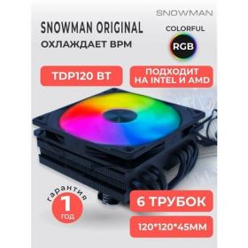 Кулер для охлаждения процессора Snowman MС-75 RGB – устройство со сбалансированными характеристиками. Оно подойдет для различных систем, возможно поставить на платы с различными видами сокетов. Для этого вместе с кулером в коробку прикладываются крепления под них. Крепление кулера на винтах .