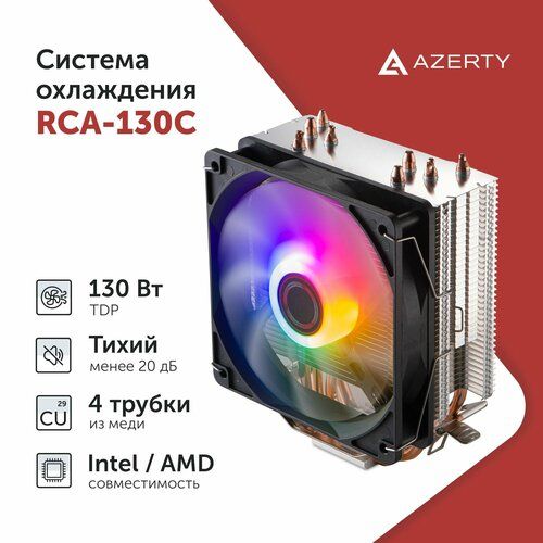 Устройство охлаждения(кулер) AZERTY Red Cool RCA-130C, 4-pin, RGB, серебристый, 120мм, Ret [120-0779]