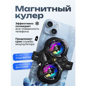 Найти - Кулер для телефона , двойной для охлаждения с RGB подсветкой, LED дисплей, 3 режима мощности