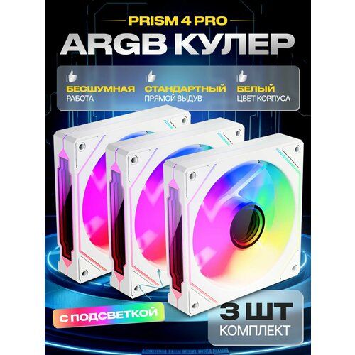 Найти - 3шт. Выдув Прямой Корпусный вентилятор ARGB 120 мм PRISM 4PRO Белый Прямой