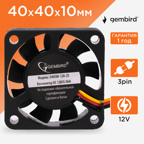 Найти - Вентилятор для корпуса Gembird D40SM-12A-25, 0.12 А, черный