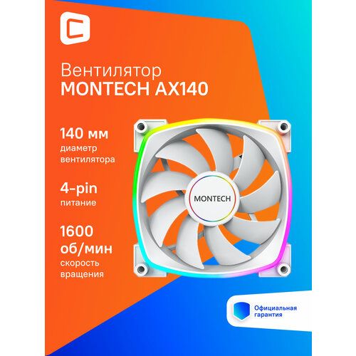 Вентилятор Montech AX140 ARGB 140х140x25 белый 4-pin (AX140 PWM WHITE) Ret 924086052