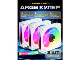 3шт. Выдув Прямой Корпусный вентилятор ARGB 120 мм PRISM 4PRO Белый Прямой 4618781923