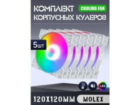 Комплект из 5 ШТ. Кулер для корпуса пк. Вентилятор для компьютера 120мм с RGB подсветкой 3-pin и Molex 4348400248