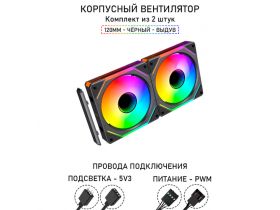 Модульный вентилятор - 5PRO Inline - 120мм, A-RGB, PWM+5v3, Комплект из 2 штук, чёрный, на выдув из корпуса 103812478558