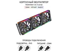 Модульный вентилятор - 5RS Inline - 120мм, A-RGB, PWM+5v3, Комплект из 3 штук, чёрный, на выдув из корпуса 103791373485
