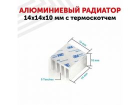Аллюминиевый радиатор, 14х14х10мм, с термоскотчем 103444623373