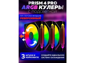 Черный Корпусный вентилятор для Компьютера Кулер Пк Prism 4 PRO 3 штуки Реверсивный 4373690026