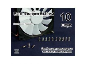 10шт. 5x12мм Винт саморез для больших компьютерных вентиляторов охлаждения (кулер 120х120), серебристый. Качество, не Ржавеют 101845710548
