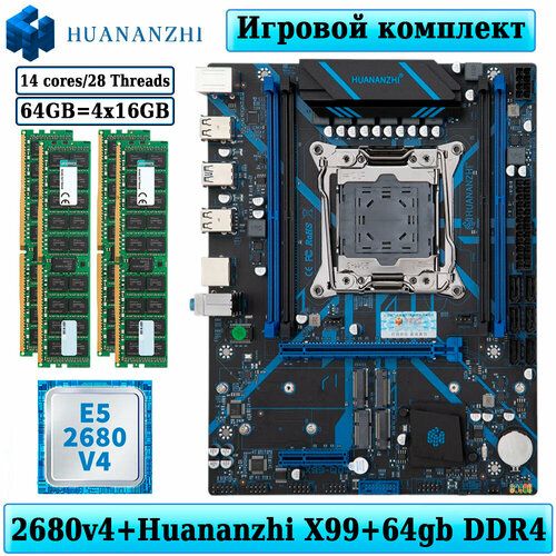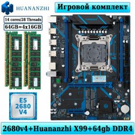 Комплект материнская плата Huananzhi X99-QD4 + Xeon 2680V4 + 64GB DDR4 ECC REG 4x16GB