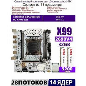 Комплект для сборки игрового пк : Материнская плата X99A4 c дополнительным охлаждением Процессор XEON-E5-2690v4, Оперативная память DDR4 16GB-2шт Радиатор для оперативной памяти-2шт Сата кабель-1шт Задняя планка-1шт Батарейка биос CR2032-1шт Кольцо переходник для кулера LGA2011-1шт Термопаста-1шт Характеристики Название бренда Amentmen Тип разъема LGA 2011-3 Поддержка памяти типа DDR4 Сценарий использования GAMING, Аудио и видео, Домашнее хозяйство, Офис, DESIGN, Видео продукции, Промышленный компьютер, Рабочая станция, Server, Научных вычислений, 3-D моделирование, Рендер видео, MaxCompute, Другой, Форм-фактор Микро-ATX Чипсет H81/B85/C612 Производитель чипсета İntel Максимальный объем оперативной памяти 256 ГБ Канал памяти Двойной Для хранения Тип интерфейса SATA 2, SATA 3, M.2 (NVMe) Стандарты PCI - E PCI - E 3,0 Задние Порты ввода/вывода 1x RJ45, PS/2 Кол-ва PCI 1 Количество слотов для памяти 4 Количество PCIe x 16 1 Встроенный LAN 1x RJ45 1000mb Совместимость с процессором Intel Xeon e5 v3 v4 Все комплекты перед отправкой были проверены на брак. Игровой комплект обеспечит высокую производительность, как в рабочих задачах, так и в самых современных играх.