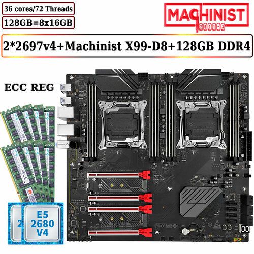 Найти - Комплект двухпроцессорная материнская плата Machinist X99-D8 Max + 2*CPU 2680V4 + 128GB DDR4 ECC 8x16GB