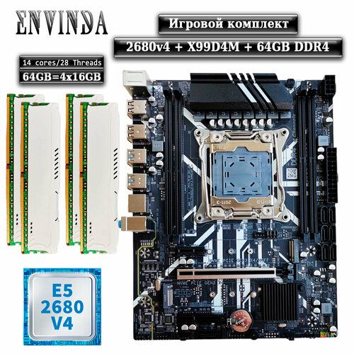 Найти - Комплект материнская плата Envinda X99 + Xeon 2680V4 + 64GB DDR4 ECC 4x16GB White