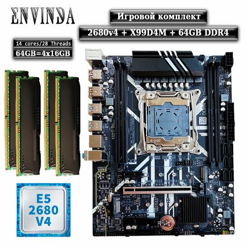 Найти - Комплект материнская плата Envinda X99 + Xeon 2680V4 + 64GB DDR4 ECC 4x16GB Black
