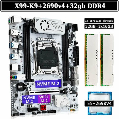 Найти - Комплект материнская плата Juxieshi X99-K9 + Xeon 2690V4 + 32GB DDR4 ECC 2x16GB White