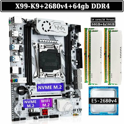Найти - Комплект материнская плата Juxieshi X99-K9 + Xeon 2680V4 + 64GB DDR4 ECC 4x16GB White