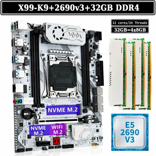 Найти - Комплект материнская плата Juxieshi X99-K9 + Xeon 2690V3 + 32GB DDR4 4x8GB White