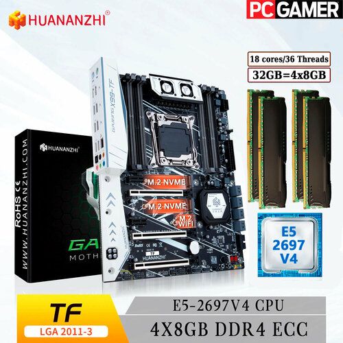 Найти - Комплект материнская плата Huananzhi X99-TF + Xeon 2697V4 + 32GB DDR4 ECC 4x8GB Black