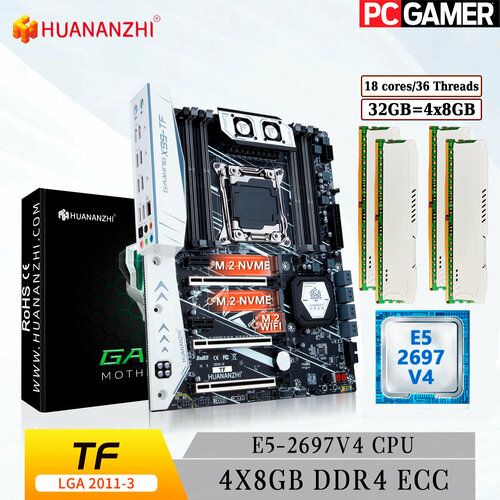 Найти - Комплект материнская плата Huananzhi X99-TF + Xeon 2697V4 + 32GB DDR4 ECC 4x8GB White