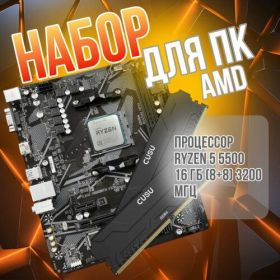 Найти - Комплект материнская плата + процессор AMD + ОЗУ. A520, Ryzen 5 5500. 16 гб (8+8) 3200 МГц