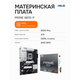 Материнская плата ASUS PRIME X870-P AM5 ATX 4xDDR5 3xPCIEx16 4xM.2 2xUSB-C HDMI 2.5GLAN PRIME X870-P