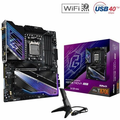 ASRock X870E Nova WiFi - это мощная и надежная материнская плата, которая станет отличным основанием для создания высокопроизводительного компьютера. Современный дизайн и передовые технологии делают эту материнскую плату идеальным выбором для геймеров, профессионалов и энтузиастов.