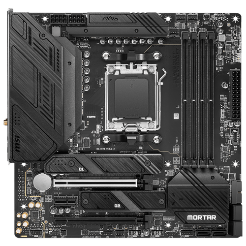 Материнская плата MSI MAG B650M MORTAR WIFI, AM5, AMD B650, 4xDDR5, 6xSATA, 2xM.2, 1xPCI-E 4.0 x16, 1xPCI-E 4.0 x4, 1xHDMI, 1xDP, 1x2.5Gb LAN, 3xUSB 3.2 Gen 2, 4xUSB 3.2 Gen 1, 1xUSB-C 3.2 Gen 2x2, 5x3.5мм аудио, 7.1, Micro-ATX