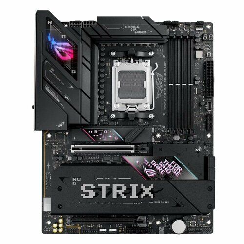 Найти - Asus Материнская плата ASUS ROG STRIX B850-E GAMING WIFI (Socket AM5, ATX, 4xDDR5(256GB), DP/HDMI/USB4, 1xPCIe 5.0x16/1xPCIe 4.0x16, 1xLAN (5GbE), Wi-Fi 7, BT, 4xSATA 6Gb/s, 5xM.2, 2xType-C, 6xUSB 3.2, 4xUSB 2.0)